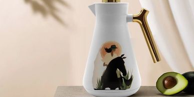 The designer flask with inner glass i completely insulated from heat, allowing you to keep your hot drinks. The high-quality flask is suitable for serving at friends' gatherings and for everyday use.